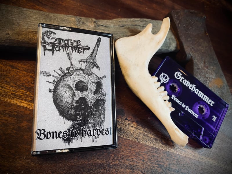 Bones, nails, ashes. Gravehammer is an old school death metal band from Northern Germany and deeply rooted in the first waves of extreme metal. Archaic riffs, furious drums and bone-shaking vocals clash in a multifaceted yet primitive and anachronistic sound with outbursts of doom, black metal and punk. The 2023 full-length debut „Bones to harvest“ brings those trademarks together, being inspired by bands like Sarcófago, Morbid, Nihilist, Sadistic Intent, Hellhammer, Bathory and Winter.